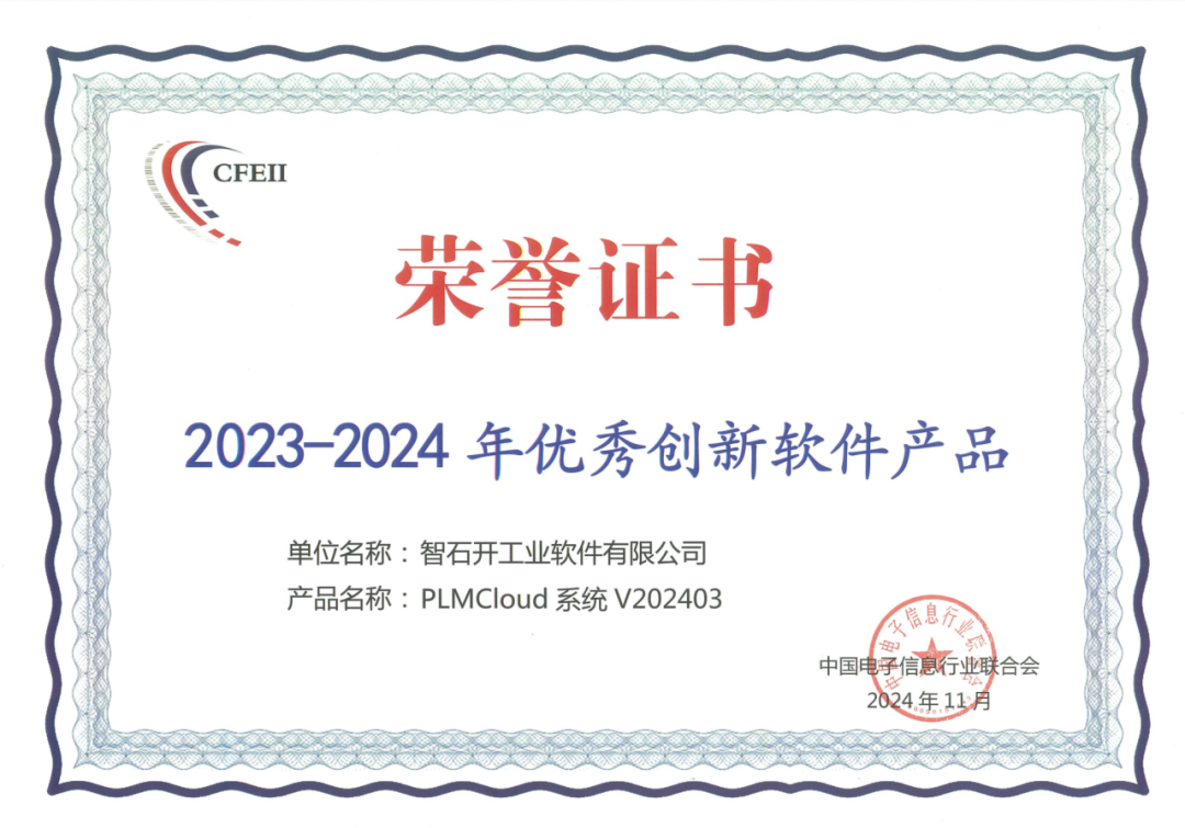 智石开作为中国工业软件的中坚力量,深耕PLM十余载,沉淀了4000余家企业研发创新管理的成功经验,产品技术实现自主创新、自主可控,始终致力于推动企业研发数智化转型。今年,全球权威信息技术研究和顾问公司IDC发布的《中国PLM市场分析及厂商份额,2023:创新左移》报告,智石开继2022年后,再度蝉联PLM市场双料冠军:国产PLM厂商市场占有率第一,高科技电子行业市场占有率第一。此次载誉“2023-2024 年优秀创新软件产品”,是国家权威机构给予智石开的肯定,更是鞭策。